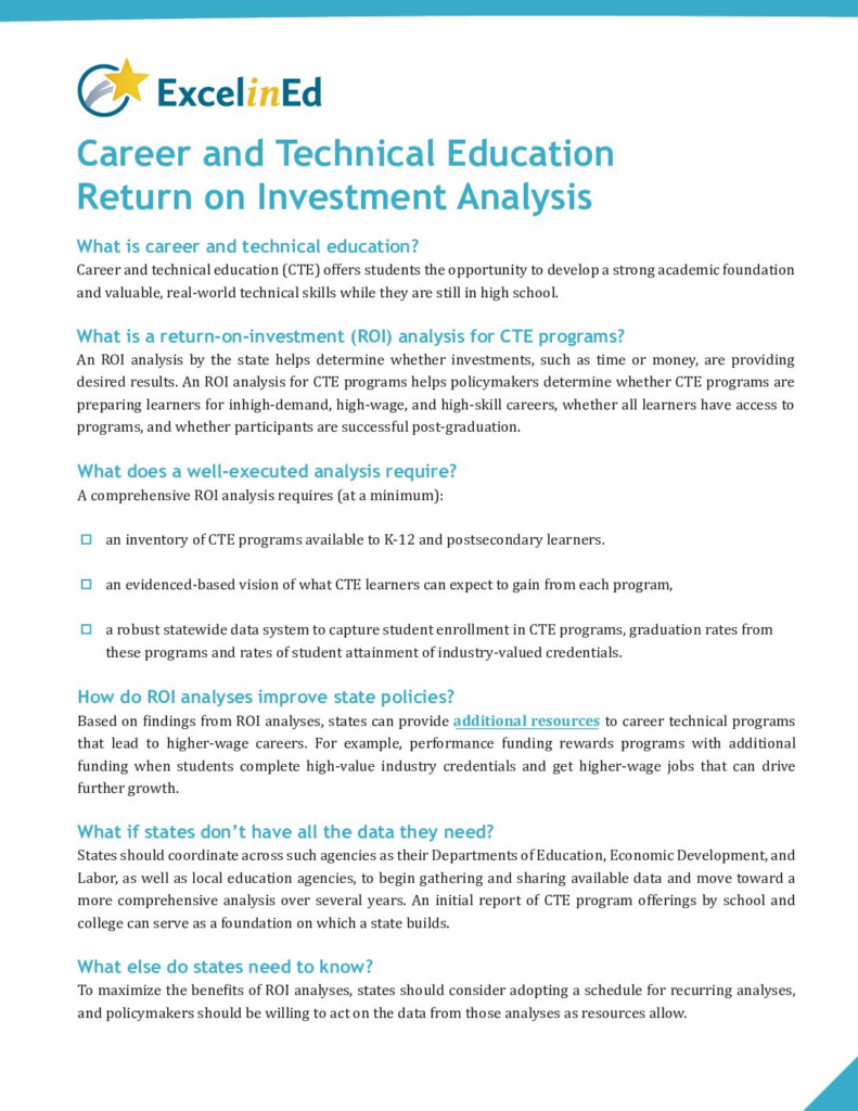 Career and Technical Education and Return on Investment Analysis