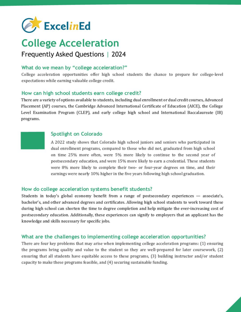 College acceleration opportunities offer high school students the chance to prepare for college-level expectations while earning valuable college credit.
