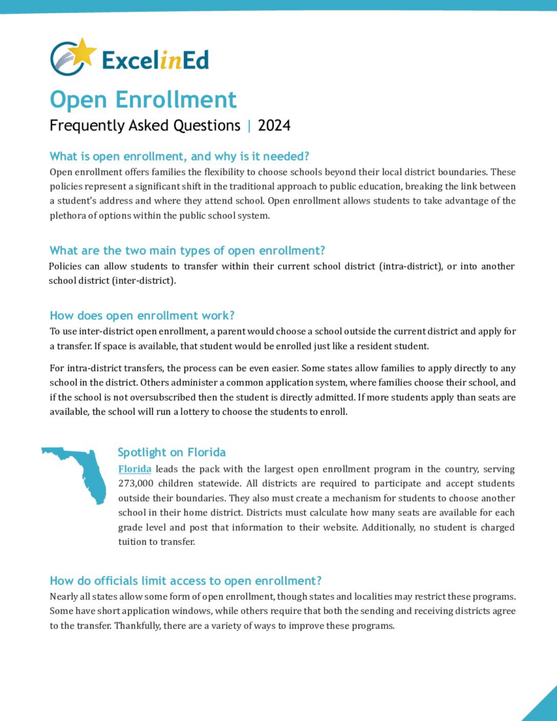Open enrollment offers families the flexibility to choose schools beyond their local district boundaries. These policies represent a significant shift in the traditional approach to public education, breaking the link between a student’s address and where they attend school. Open enrollment allows students to take advantage of the plethora of options within the public school system.