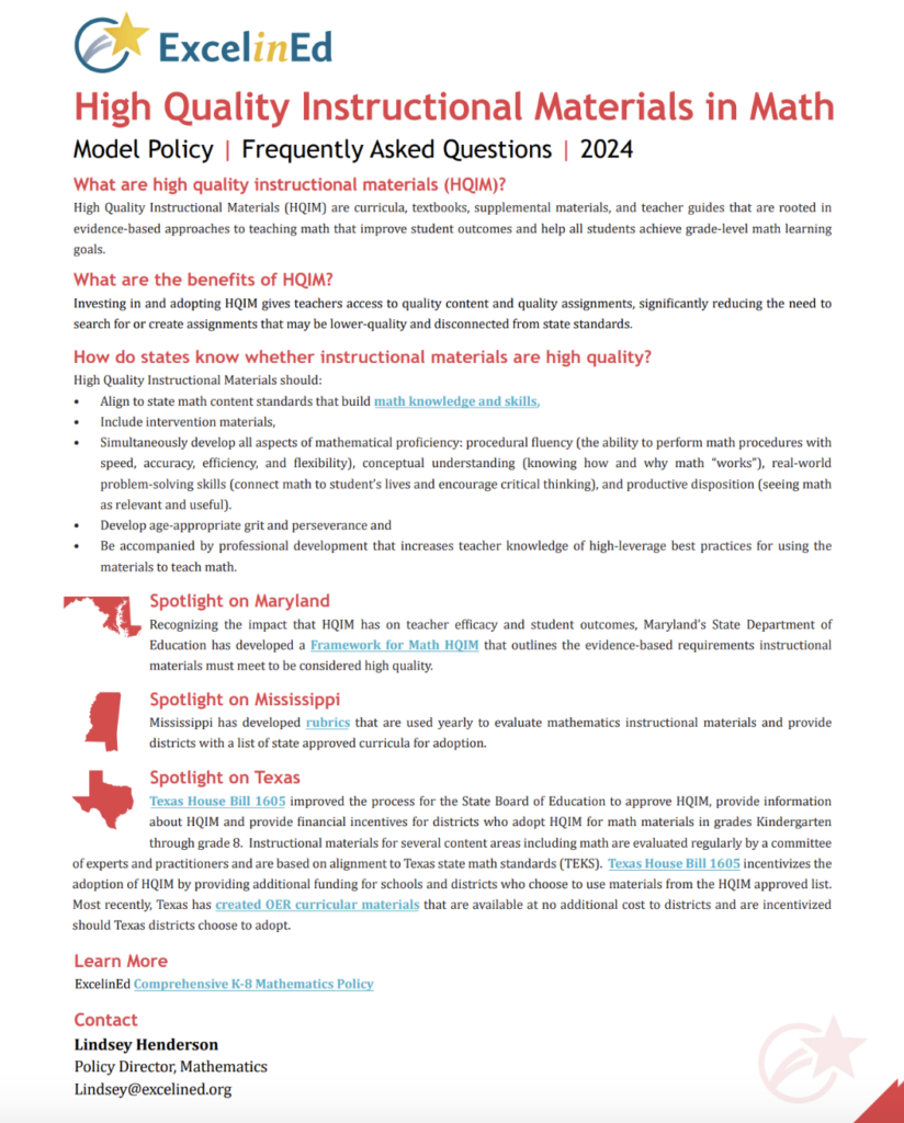High Quality Instructional Materials (HQIM) in Math
