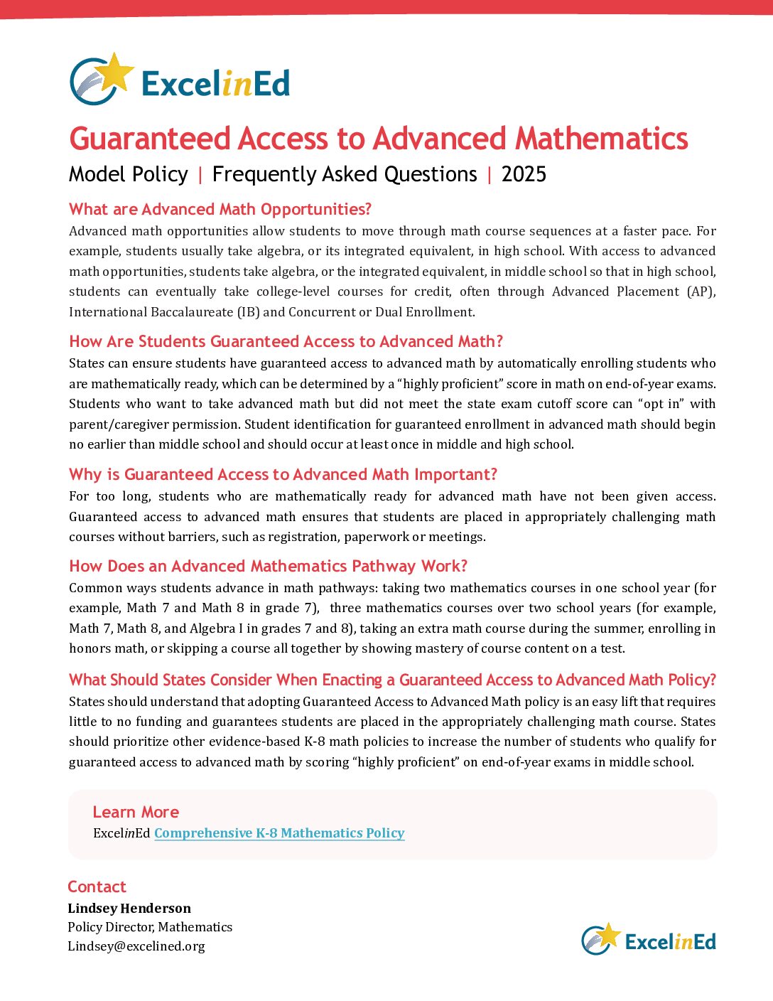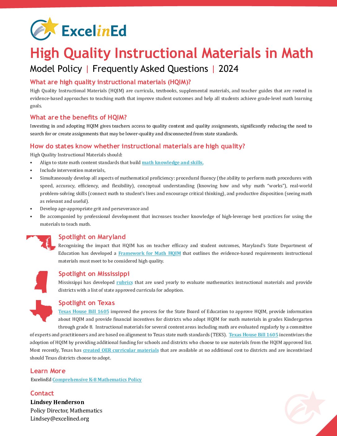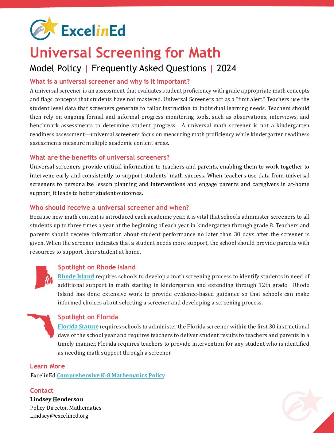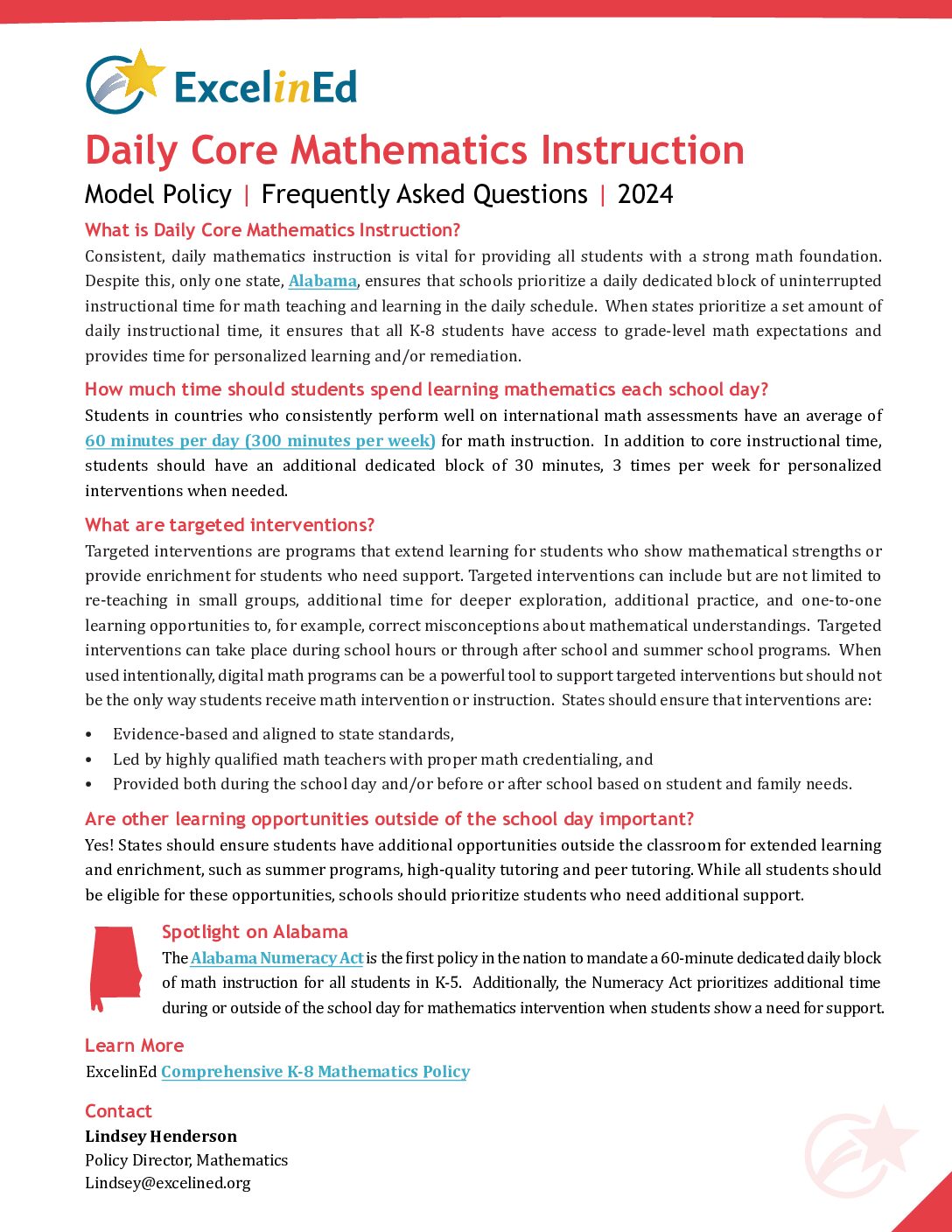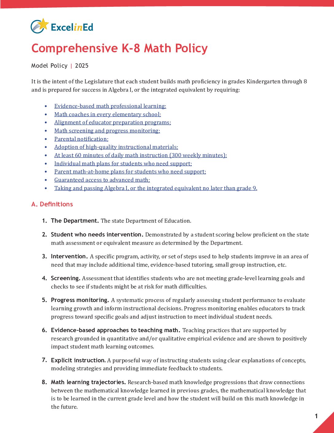 Unfortunately, there are not quick fixes. A comprehensive K-8 mathematics strategy includes daily math instruction with high quality content and instructional materials; support for teachers; assessments and parent notification; interventions; and resources for families and caregivers.